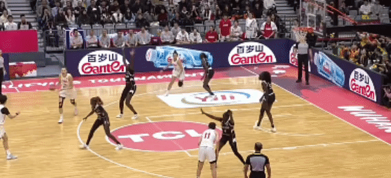 第一节,比赛一上来,罗欣棫马上三分命中,手感很好。旋即中国队打联防,张曼曼组织进攻,罗欣棫再中三分!